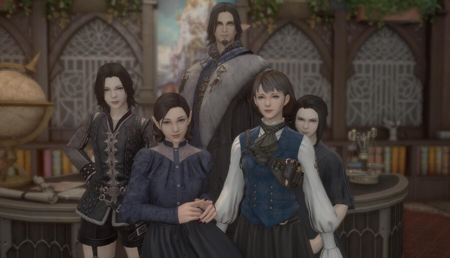 House Rosellain is a somewhat distant branch family of House Haillenarte, formed when Arséne's distant ancestor married into the family. This distant ancestor's love for roses and his ability to grow them beautifully led to the House being christened Rosellain. Historically, they have been excellent warriors as well as being painters, musicians, and creators, eventually adopting the family motto of 'Valor in Battle, Beauty in Creation'. House Rosellain enjoyed a long tradition of bearing excellent knights as well as contributing to the culture of Ishgard with their art, music, and creations, but entered into somewhat of a decline just before the most recent ignition of the now-concluded Dragonsong War, made even steeper by House Haillenarte's - and by extension, House Rosellain's - loss of the Stone and Steel Vigils. Having lost much of the family to these assaults on the Vigils, including the Lord of the House - Arséne's father - the young man assumed his place as the Head of the House. After this, the new Viscount sought to reclaim glory for his family, along with his daughter and the remaining knights still loyal to the house. It was through great effort that Arséne rebuilt House Rosellain, along with help from his wife, Ella's, contributions of coin to the family war coffers through her work breeding and raising warbirds for the military. Though the family's love for the arts and science was to be put on hold for this period, they became well-known for training excellent knights and knightesses, Arséne himself personally overseeing the training of plenty of well-honed warriors using the very same techniques passed down to him by his father. They revered the Fury, of course, and would vow to uphold their oath to Goddess and country.At the end of the War, once the truth was revealed that King Thordan had been keeping the great secrets of the War, and Isghard herself, hidden from the masses sparked a rather goodly bit of outrage in the House. Arséne and his eldest daughter, Renata, were crushed, along with many of the knights they had trained up. With the War's sudden end, as well, the need for warbirds decreased, and Ella was no longer able to provide as much of a boon to the family's finances as she was before.It wasn't until the middle daughter of the family, Odette, reinvigorated the family's faith and love for art by encouraging them to remember the family's motto - Valor in Battle, Beauty in Creation. Since there was no longer much battle to deepen their valor, she said, they should look to find beauty in creation. It was this suggestion that led to House Rosellain once again delving into their other talent - the arts and sciences. Engaging heavily in the restoration of the Firmament, the remaining members of House Rosellain reminded the city of Ishgard that they were creators and artists, as well. Now once again contributing to the humanities of the city and beyond, they found a new fortune in the beauty of the world, rather than in battle.And yet, no House is truly complete without scandal. At the close of the Firmament's restoration, House Rosellain underwent a bit of a shock - It was rumoured that Arséne had added a new family member - A long-lost bastard son, and a Miqo'te to boot. Just days younger than the eldest daughter, Renata, he was born out of wedlock to a Miqo'te woman of Dravania, or so they say. It has been the topic of much gossip and debate within certain noble circles, recently, and though the rumour has all but been confirmed by this point, there are still those who are blissfully unaware of this raven-haired and silver-eyed heir. Despite tradition of the House states that the eldest living son of the family must one day secede his father, many expect that Renata, the eldest daughter, will one day take on this role instead.